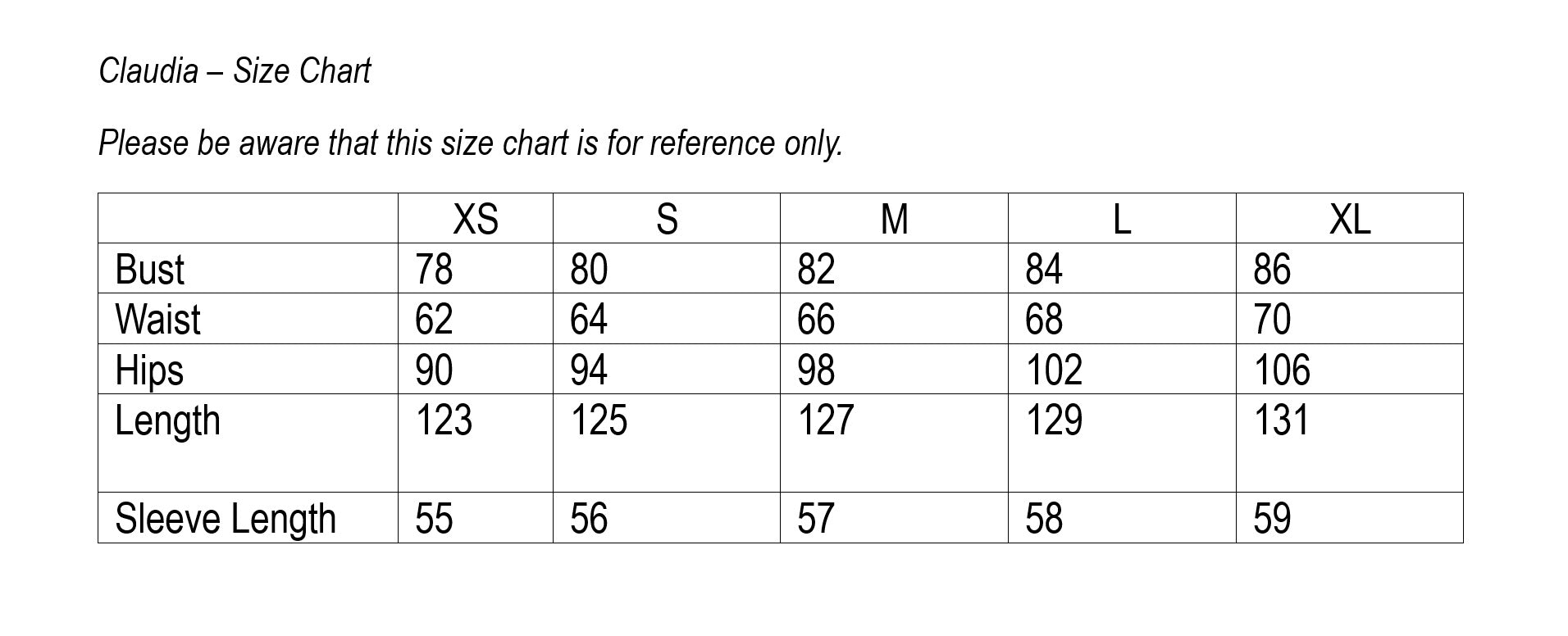 Моделът Симона е висока 155 см и носи размер XS. Мерките ѝ са: бюст 80 см, талия 55 см, ханш 84 см.