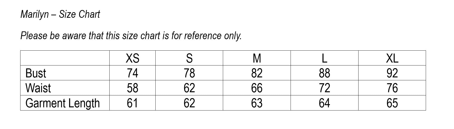 Model Simona (brunette) is 155 cm tall and wears size XS. Her measurements are: Bust 80 cm, Waist 55 cm, Hips 84 cm.
